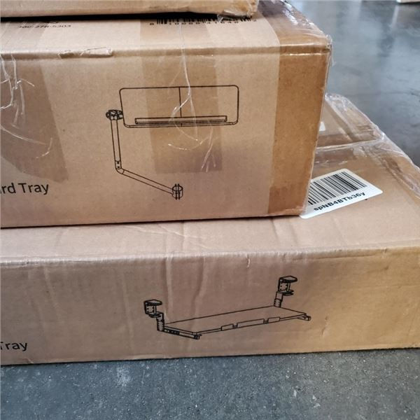 PNEUMATIC ARM DUAL MONITOR DESK MOUNT WITH DOCKING STATION AND KEYBOARD TRAY